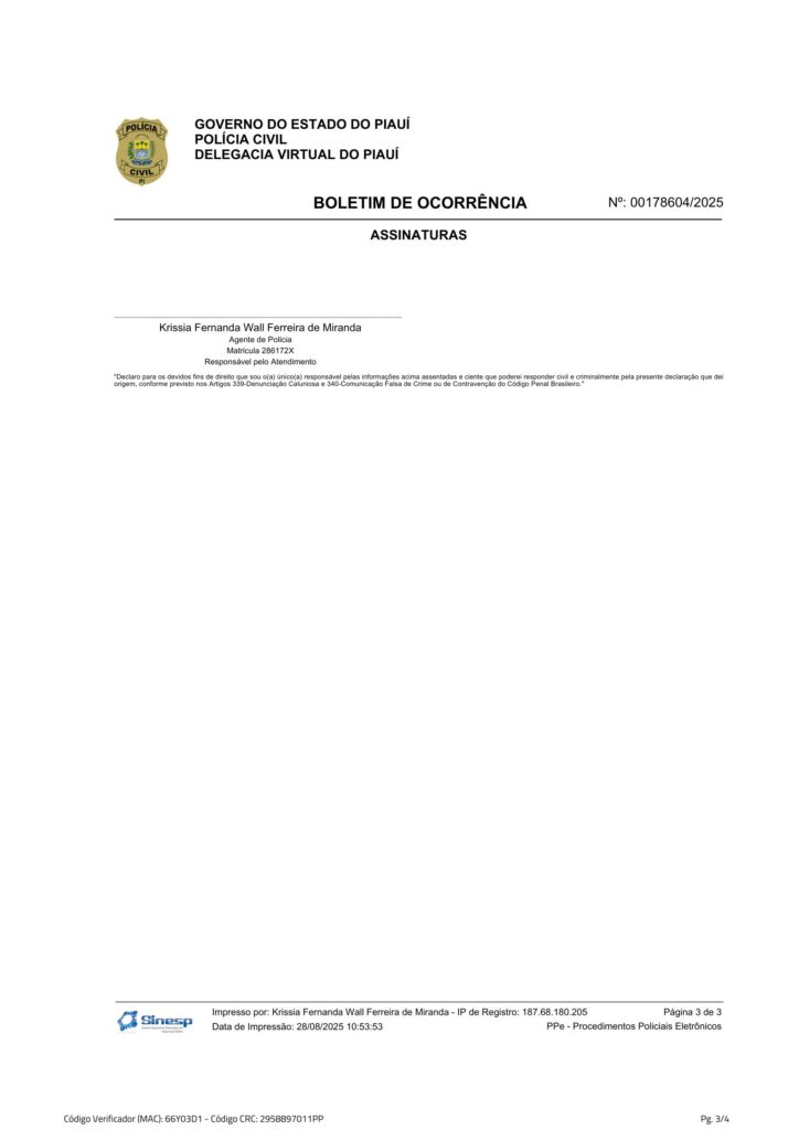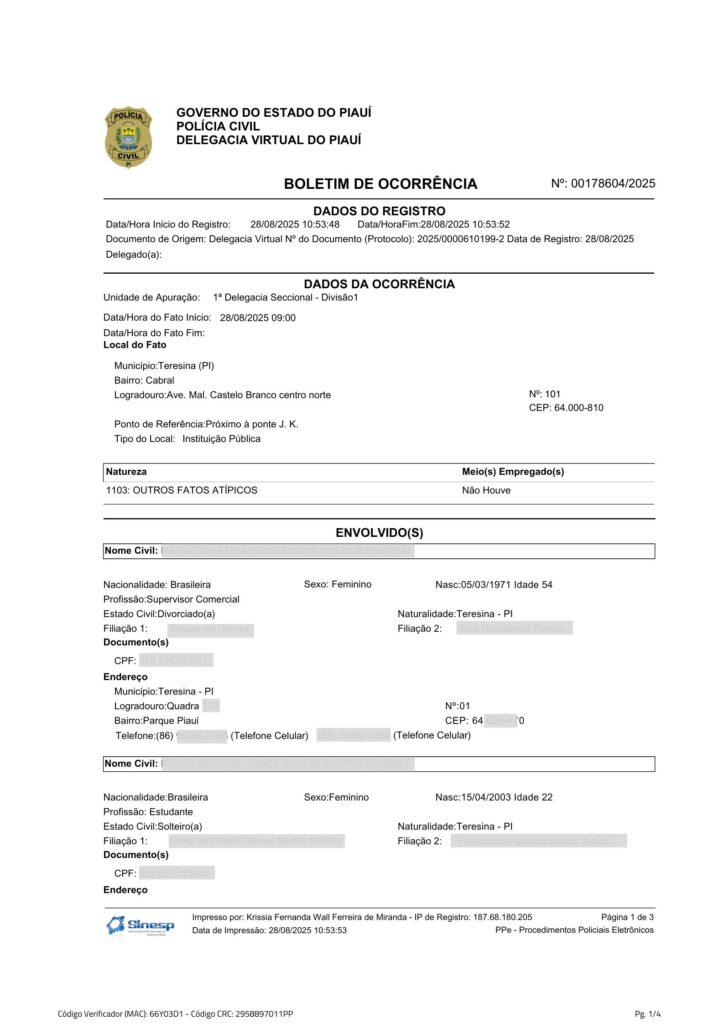 Segue Boletim de Ocorrência aberto: