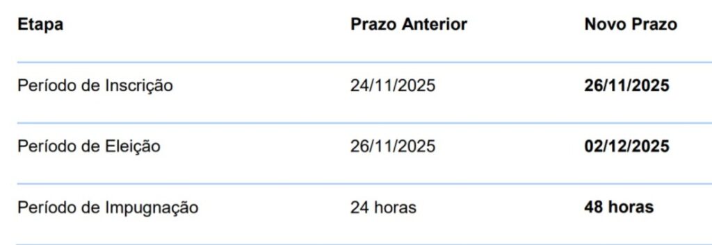Em virtude da necessidade de garantir maior participação dos interessados, ficam alterados os prazos e datas do Edital nº 006/2025, conforme o novo cronograma a seguir: